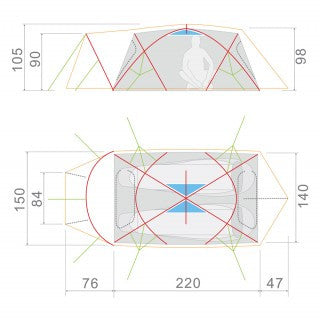 • Ultra light foam spacers prevent fly from touching the inner tent